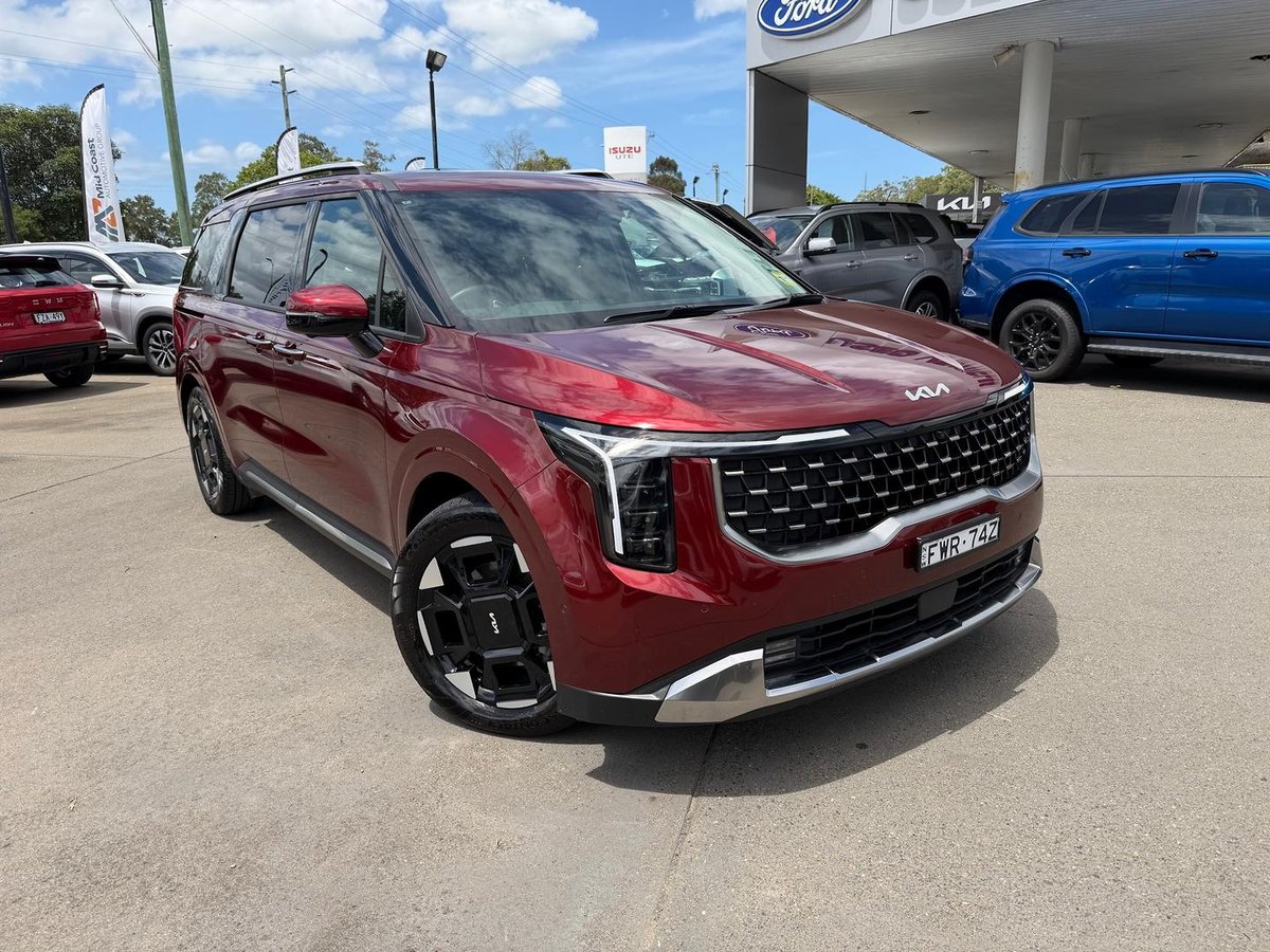 Ex demonstrator Kia Carnival KA4 PE MY26 GT-Line Wagon in stunning Flare Red. Luxury 8-seat people mover powered by the smooth and efficient 2.2L turbo diesel with 8-speed automatic. Loaded with GT-Line features, premium comfort and space for the whole family, making it ideal for long trips or everyday driving!