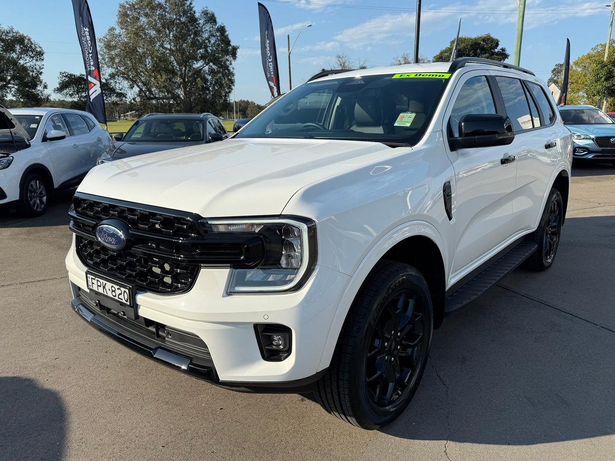 Ex-demo 2025.25MY Ford Everest Sport in Arctic White — just 1,342kms, 3.0L V6 turbo diesel, 10-speed auto, 7 seats, full-time 4WD. Near-new luxury and performance for only $79,555 drive away!
